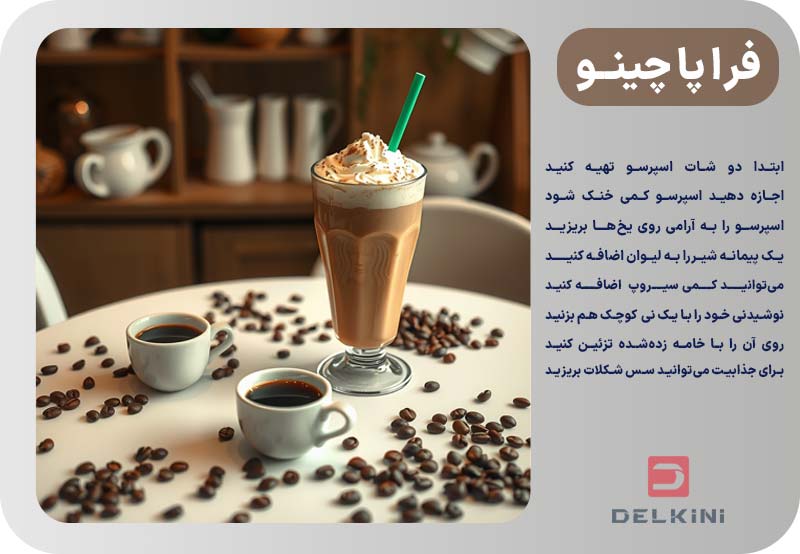 فراپاچینو یکی از محبوب‌ترین نوشیدنی‌های تابستانی در سراسر جهان است که برای اولین بار توسط استارباکس معرفی شد و به سرعت جایگاهی ویژه در میان علاقه‌مندان به قهوه و نوشیدنی‌های سرد پیدا کرد. این نوشیدنی تابستانه ترکیبی از قهوه، شیر، یخ و مواد دیگری مثل سیروپ و طعم‌دهنده‌هاست که توسط مخلوط‌کن با هم ترکیب می‌شوند و یک نوشیدنی غلیظ، خامه‌ای و خنک را پدید می‌آورند. فراپاچینو معمولا با خامه زده‌شده و سس‌های مختلفی مانند کارامل یا شکلات تزئین می‌شود که علاوه بر طعم لذیذ، ظاهری جذاب و اشتهابرانگیز به آن می‌بخشند و آن را به یک نوشیدنی تابستانه شیک برای پذیرایی تبدیل می‌کنند.