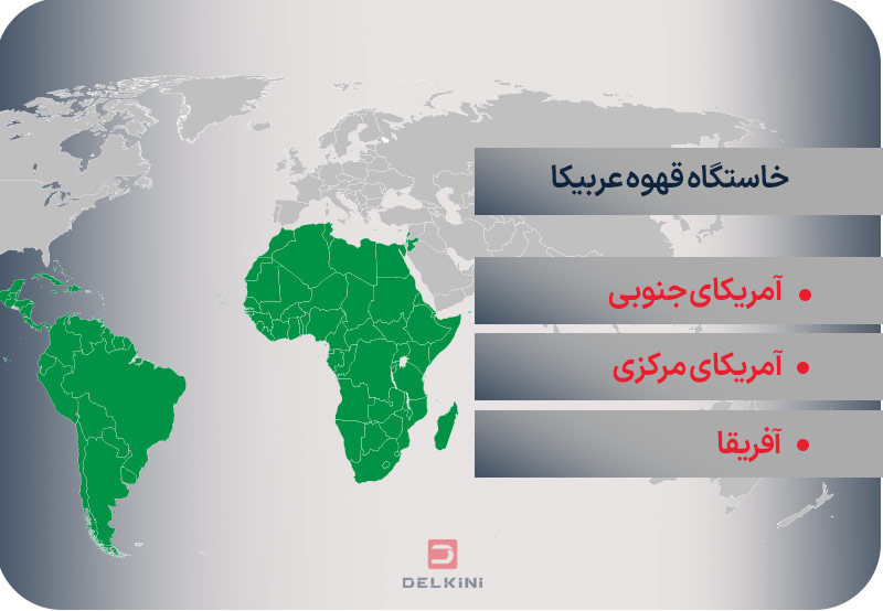 آمریکای جنوبی: کشورهای برزیل، کلمبیا و پرو از خاستگاههای محبوب قهوه عربیکا هستند. قهوه عربیکای برزیلی بابت طعم شکلاتی و آجیلی خود شناخته میشود؛ در حالی که عربیکای کلمبیایی طعمیادهای مرکباتی و کاراملی دارد. عربیکای پرو نیز طعمی ملایم و متعادل با تهمزه گلی و میوهای ارائه میدهد.