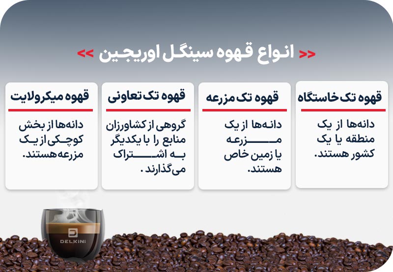 خاستگاه و منشأ دانه قهوه نقش مهمی در تعیین عطر، طعم و ویژگیهای کلی آن ایفا میکند. بدین ترتیب که اقلیم، ارتفاع، ترکیب خاک و روشهای کشت همگی در پروفایل قهوه تأثیر دارند. بیشتر قهوه جهان در منطقهای به نام کمربند قهوه رشد میکند که کشورهای نزدیک به خط استوا را شامل میشود. هر منطقه تولید قهوه، ویژگیهای خاص خود را به ارمغان میآورد. مثلا برخی مناطق به خاطر نتهای میوهای و گُلی و برخی دیگر به خاطر طعمهای آجیلی یا شکلاتی شناخته میشوند. در ادامه با خصوصیات قهوه سینگل اورجین مناطق مختلف آشنا میشوید: