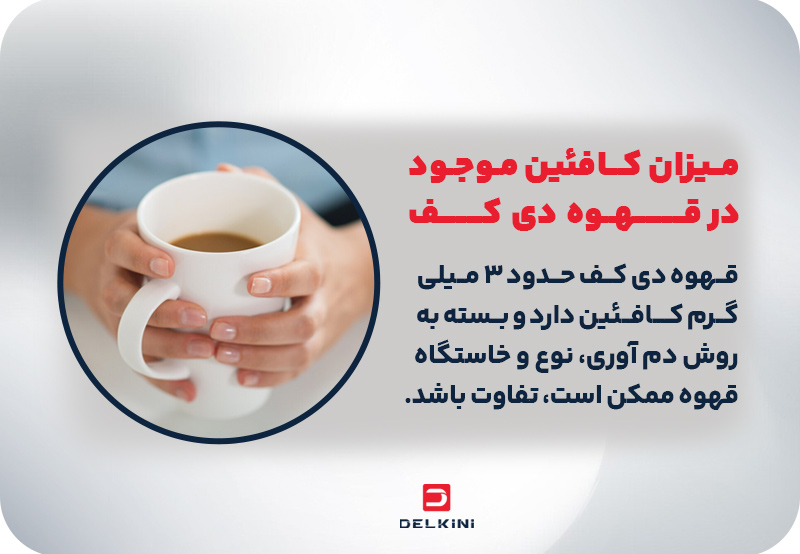 بله. قهوه دی کف حاوی کمی کافئین، حدود ۳ میلیگرم در هر فنجان است.