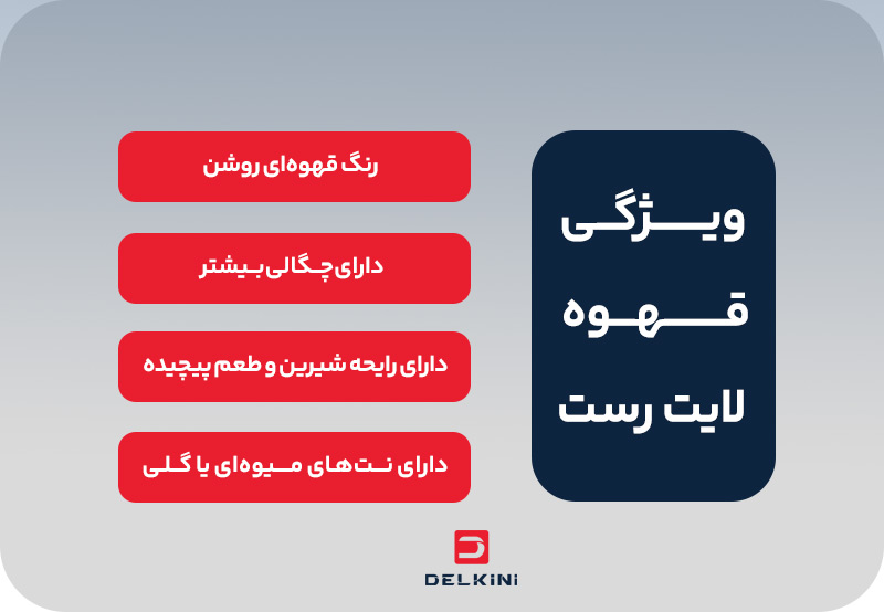 کارشناس دلکینیچون در قهوه لایت رست، مدت زمان رُست شدن کمه، ترکیبات اسیدی دانه حفظ میشوند. مخصوصاً اگر دانه عربیکا باشد، این اسیدیته بیشتر حس میشود. اگه طعم ترش رو دوست نداری، شاید مدیوم رست انتخاب بهتری باشه.