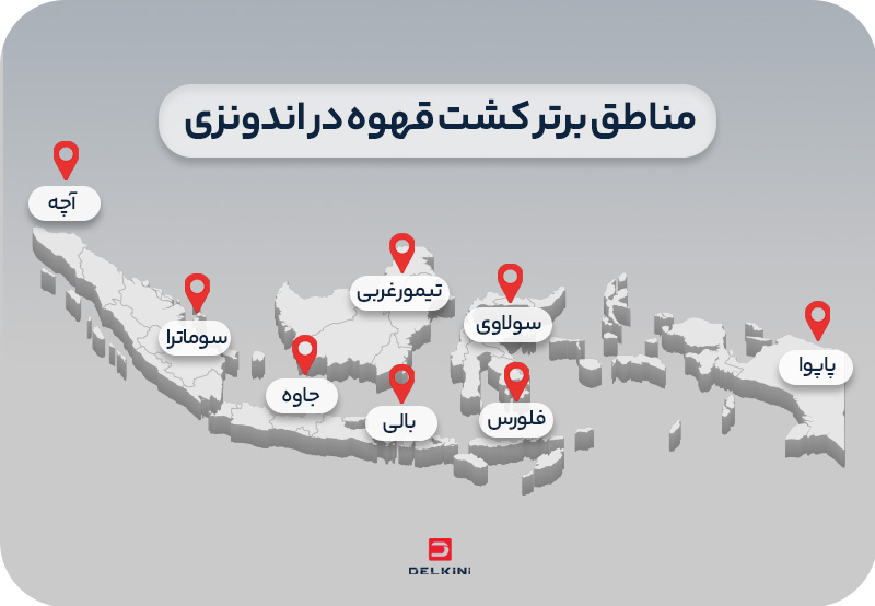 مناطق معروف اندونزی شامل سوماترا برای طعمهای خاکی و قوی، جاوا برای نتهای گیاهی و آجیلی و بالی برای قهوههای روشن و میوهای است.