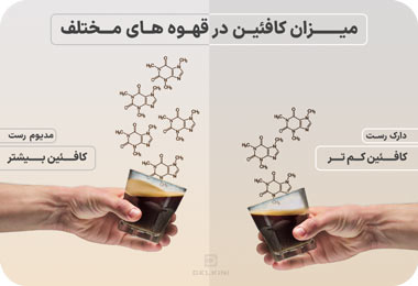 درجه برشتهکاری: قهوه دارک رست معمولا در مقایسه با قهوه لایت رست به ازای وزن برابر، کافئین بیشتری دارد. (میزان کافئین در درجات مختلف برشته کاری)