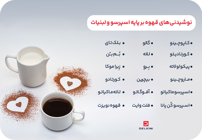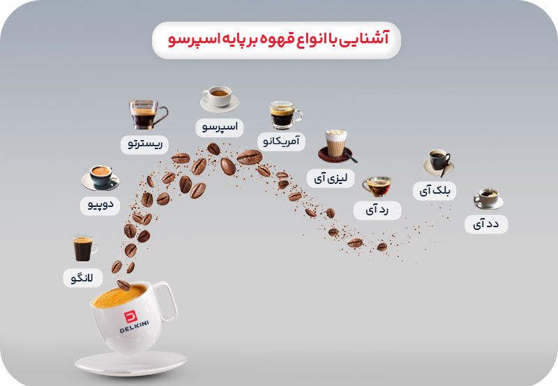 در این مقاله از دلکینی، انواع نوشیدنی‌های بر پایه اسپرسو را به دو دسته‌ بدون لبنیات و با لبنیات تقسیم کرده‌ایم و هر نوشیدنی را به‌ طور خلاصه معرفی خواهیم کرد. با خواندن این مقاله دیگر لازم نیست هنگام سفارش قهوه کلافه شوید، بلکه می‌توانید با آگاهی کامل، نوشیدنی موردعلاقه‌ خود را انتخاب کنید یا حتی در خانه این نوشیدنی‌ها را تهیه کرده و از رفتن به کافه بی‌نیاز شوید.