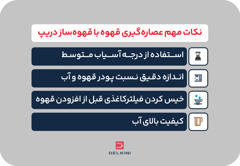 آیا دوست دارید روز خود را با یک فنجان قهوه داغ شروع کنید، اما فرصت سروکله زدن با دمافزارهای پیچیده دستی را ندارید؟ در این صورت قهوهساز دریپ اتوماتیک به کمک شما میآید. این دمافزار، دستگاهی کاربردی در آشپزخانه است که به گونهای طراحی شده تا قهوهای خوشطعم را با کمترین دردسر به شما تحویل دهد. مزایایی نظیر سهولت استفاده و سرو حجم زیاد قهوه، قهوهساز دریپ را به یکی از محبوبترین لوازم آشپزخانه تبدیل کردهاند. در این مقاله ابتدا به بررسی دمافزار برقی دریپ میپردازیم، نحوه عملکرد و اجزای آن را توضیح میدهیم و در نهایت نحوه تهیه قهوه چکهای و نکات نگهداری دستگاه را برایتان بازگو خواهیم کرد؛ پس با دلکینی در ادامه همراه باشید.