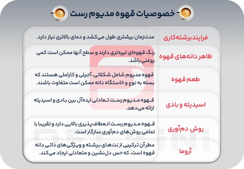 ویژگیقهوه لایت رستقهوه مدیوم رست