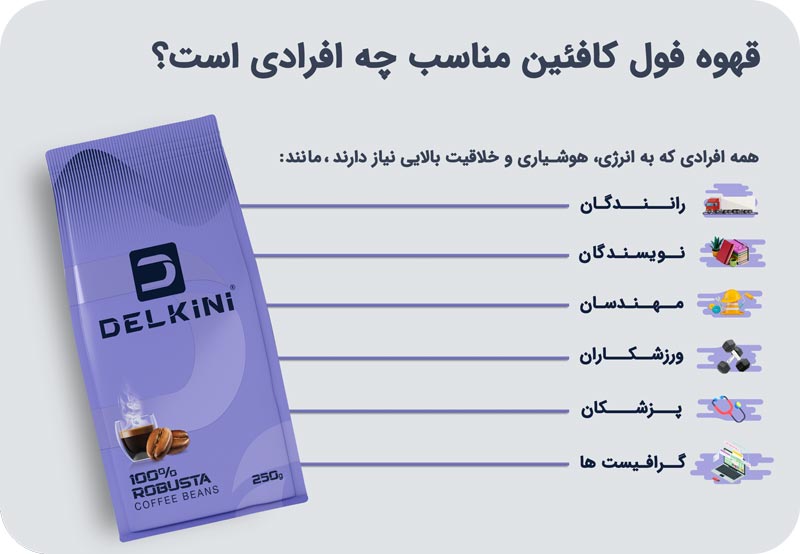 اگر به معجونی جادویی نیاز دارید که انرژی شما را در طول روز تأمین کند و عملکرد ذهنتان را بهبود ببخشد، قهوه فول کافئین برای شماست. قهوه فول کافئین دلکینی از ۱۰۰٪ روبوستا تشکیل شده و همانطور که از نامش پیداست، میتواند کافئین مورد نیاز شما را فراهم کند. با خرید قهوه فول کافئین میتوانید انرژی جسمانی خود را افزایش دهید و سطح هوشیاری خود را بالا ببرید. فرقی نمیکند دانشجو و دانشآموز باشید یا برای کار خود به انرژی نیاز داشته باشید، در هر صورت قهوه کافئین بالا را به شما معرفی میکنیم تا عملکرد خود را در طول روز بهبود ببخشید. کمبود خواب، فشار کاری زیاد و عوامل دیگر میتوانند به خستگی و افت عملکرد شما منجر شوند. در چنین شرایطی، قهوه میتواند همچون ناجی عمل کند و به شما در افزایش انرژی و تمرکزتان کمک کند.علاوه بر این، قهوههای فول کافئین دلکینی میتوانند به بهبود عملکرد ورزشی شما نیز کمک کنند. به این صورت که کافئین به عضلات شما کمک میکند تا انرژی بیشتری برای فعالیتهای ورزشی داشته باشند و در نتیجه آن، عملکرد بهتری در تمرینات خود خواهید داشت.